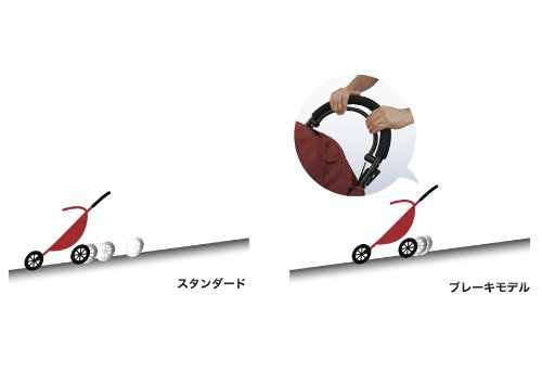 ベビーカーが自走しやすくなりますが、ブレーキモデルはハンドルのブレーキを握ることで