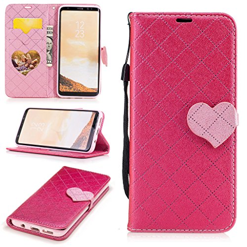 Aireratze(TM) Samsung Galaxy S8 ケース PU 手帳型 携帯電話用 [USBケーブルは無料です] カバー カード収納ポケット付き マグネット式 ストラップ付き スマートフォン保護ケース 両面プリントデザイン 赤い