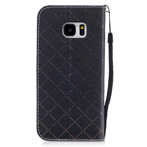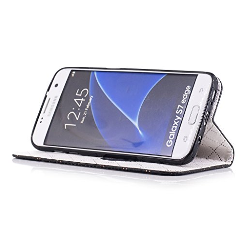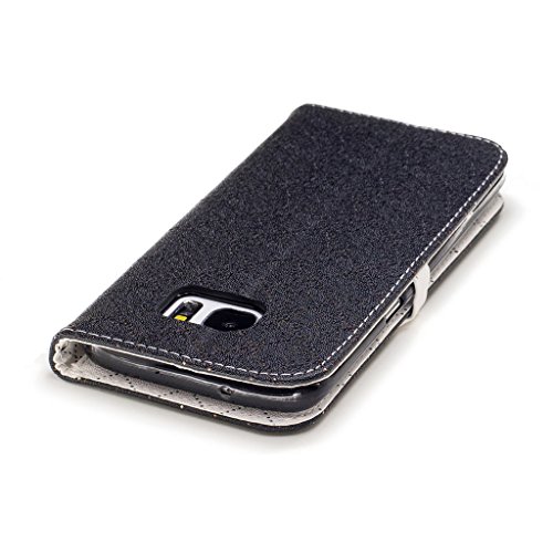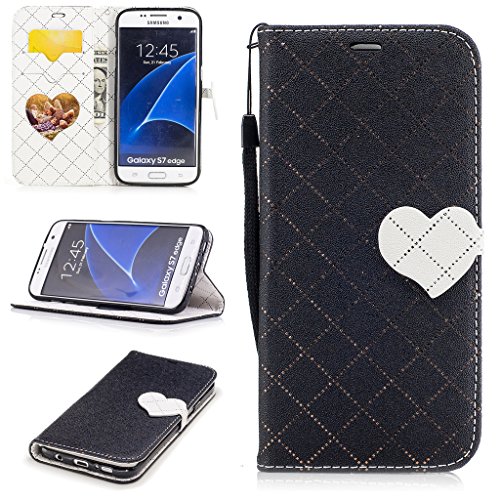 Aireratze(TM) Samsung Galaxy S7 Edge ケース PU 手帳型 携帯電話用 [USBケーブルは無料です] カバー カード収納ポケット付き マグネット式 ストラップ付き スマートフォン保護ケース 両面プリントデザイン 黒い