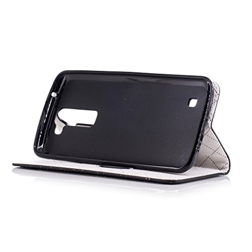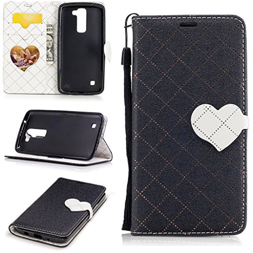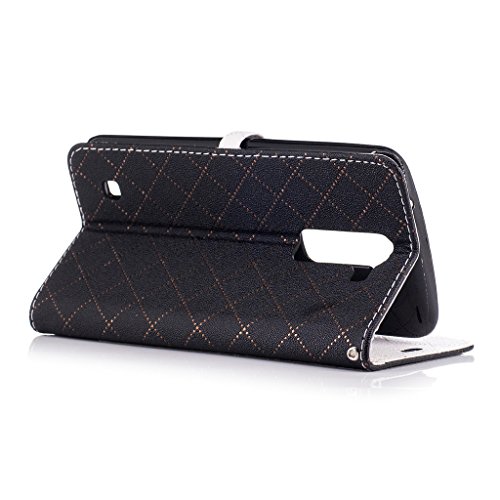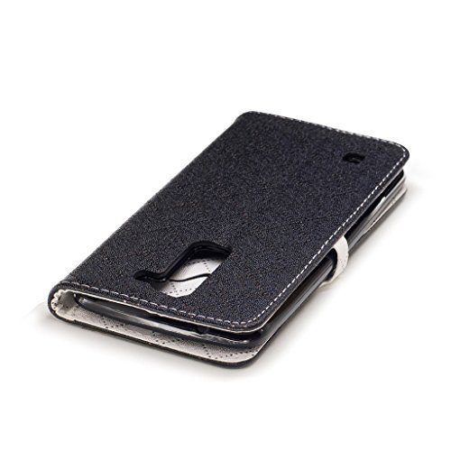 Aireratze(TM) LG K7 K8 ケース PU 手帳型 携帯電話用 [USBケーブルは無料です] カバー カード収納ポケット付き マグネット式 ストラップ付き スマートフォン保護ケース 両面プリントデザイン 黒い