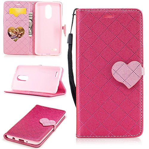 Aireratze(TM) LG K8 2017 ケース PU 手帳型 携帯電話用 [USBケーブルは無料です] カバー カード収納ポケット付き マグネット式 ストラップ付き スマートフォン保護ケース 両面プリントデザイン 赤い