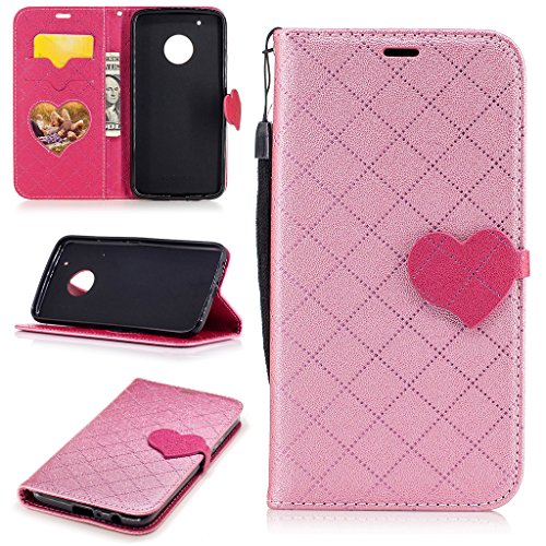 Aireratze(TM) MOTO G5 PLUS ケース PU 手帳型 携帯電話用 [USBケーブルは無料です] カバー カード収納ポケット付き マグネット式 ストラップ付き スマートフォン保護ケース 両面プリントデザイン ピンク