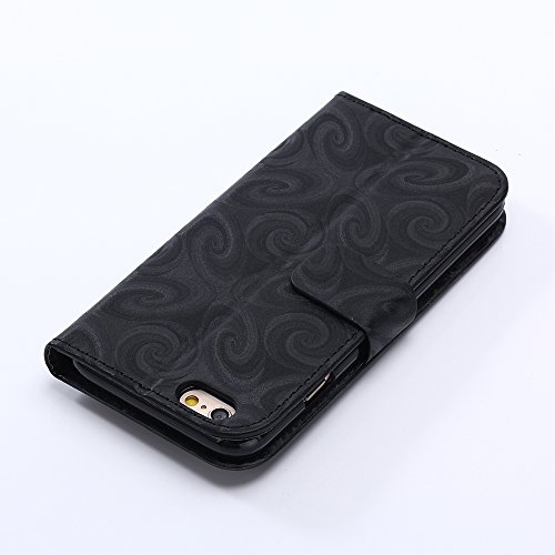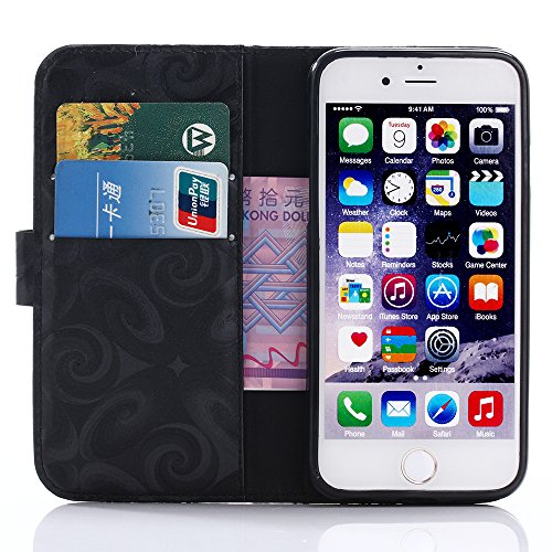 Aireratze(TM) iPhone7 ケース PU 手帳型 携帯電話用 [USBケーブルは無料です] カバー カード収納ポケット付き マグネット式 ストラップ付き スマートフォン保護ケース 両面プリントデザイン ブラック