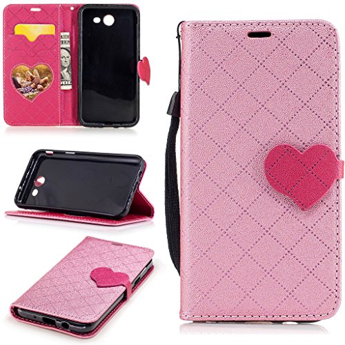 Aireratze(TM) Samsung Galaxy J3 2017 ケース PU 手帳型 携帯電話用 [USBケーブルは無料です] カバー カード収納ポケット付き マグネット式 ストラップ付き スマートフォン保護ケース 両面プリントデザイン ピンク