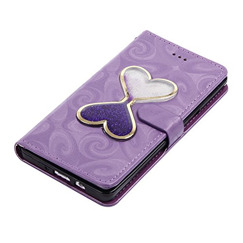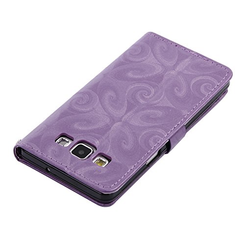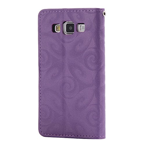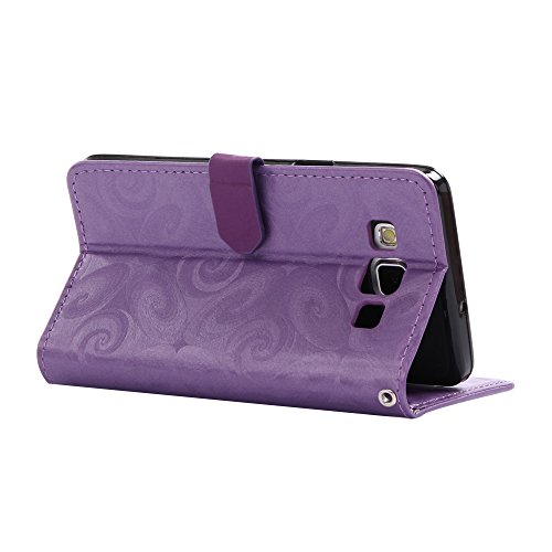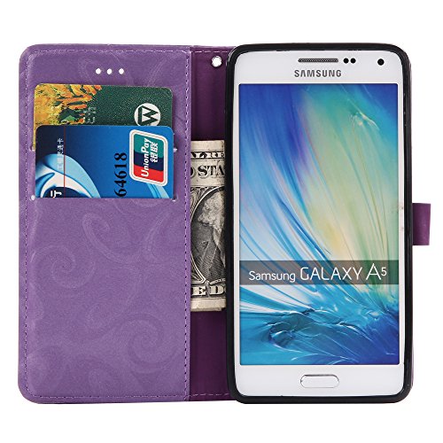 Aireratze(TM) Samsung Galaxy A5 (2015) ケース PU 手帳型 携帯電話用 [USBケーブルは無料です] カバー カード収納ポケット付き マグネット式 ストラップ付き スマートフォン保護ケース 両面プリントデザイン パープル