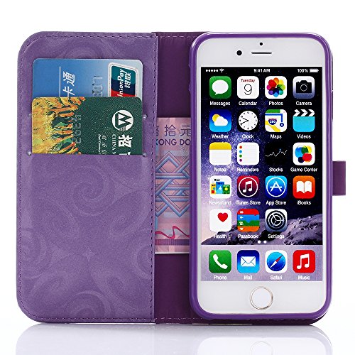 Aireratze(TM) iPhone7 ケース PU 手帳型 携帯電話用 [USBケーブルは無料です] カバー カード収納ポケット付き マグネット式 ストラップ付き スマートフォン保護ケース 両面プリントデザイン パープル
