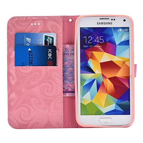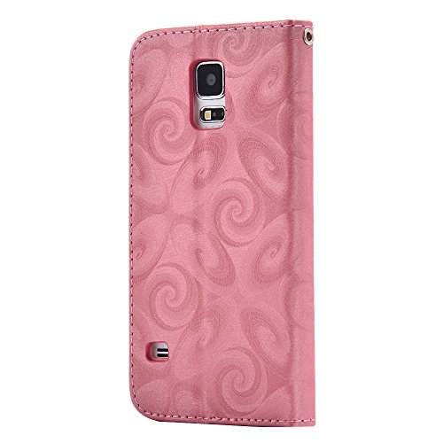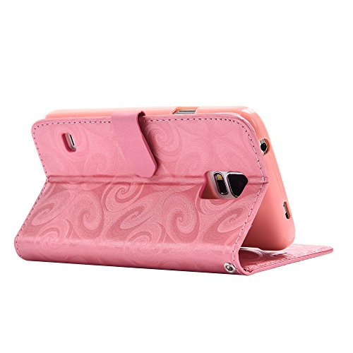 Aireratze(TM) Samsung Galaxy S5 ケース PU 手帳型 携帯電話用 [USBケーブルは無料です] カバー カード収納ポケット付き マグネット式 ストラップ付き スマートフォン保護ケース 両面プリントデザイン ピンク