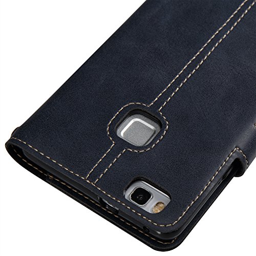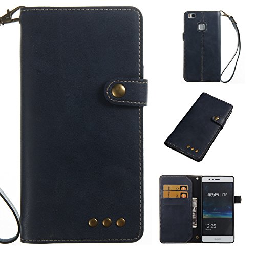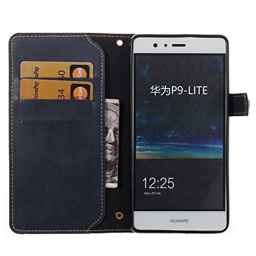 Aireratze(TM) Huawei P9 Lite ケース 良質PUレザーケース 横開き 手帳型 携帯電話用 [USBケーブルは無料です] カバー カード収納ポケット付き マグネット式 ストラップ付き スマートフォン保護ケース 両面プリントデザイン(ブルー)
