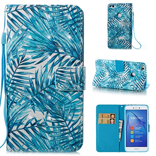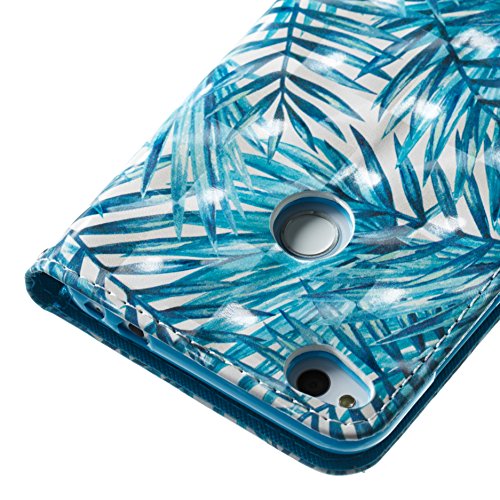 Aireratze(TM) Huawei P10 Lite 2017 ケース カバー バンパー 手帳型 3D 合皮 PU レザー ストラップ付き アートデザイン 色鮮やか 図柄 お洒落 便利 な book case 型 柔らかいシリコンTPUラバーカバー スタンド機能 カード収納機能 ギャラクシー 手帳 スマホケース (葉)