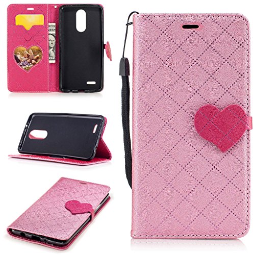 Aireratze(TM) LG K8 2017 ケース PU 手帳型 携帯電話用 [USBケーブルは無料です] カバー カード収納ポケット付き マグネット式 ストラップ付き スマートフォン保護ケース 両面プリントデザイン ピンク