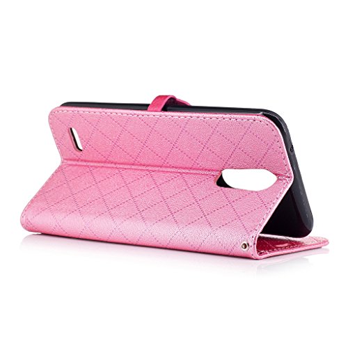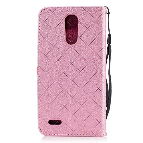 Aireratze(TM) LG K10 2017 ケース PU 手帳型 携帯電話用 [USBケーブルは無料です] カバー カード収納ポケット付き マグネット式 ストラップ付き スマートフォン保護ケース 両面プリントデザイン ピンク