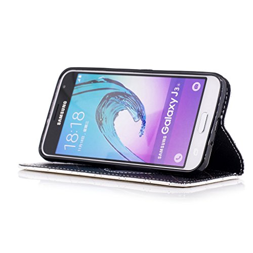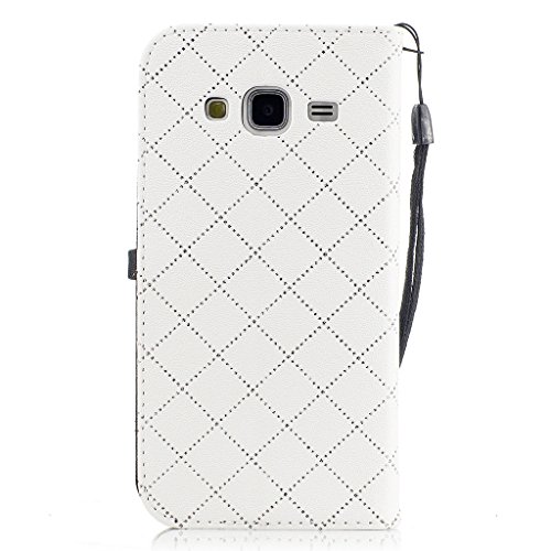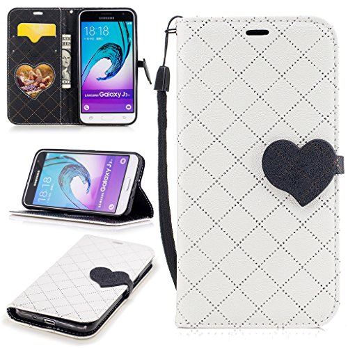Aireratze(TM) Samsung Galaxy J3 2016 (J310) ケース PU 手帳型 携帯電話用 [USBケーブルは無料です] カバー カード収納ポケット付き マグネット式 ストラップ付き スマートフォン保護ケース 両面プリントデザイン 白い