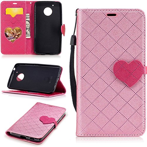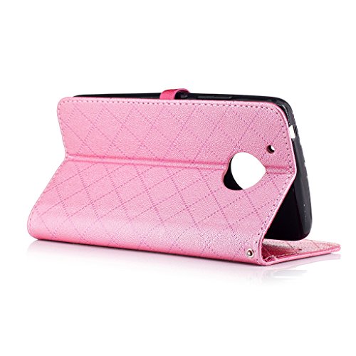 Aireratze(TM) MOTO G5 ケース PU 手帳型 携帯電話用 [USBケーブルは無料です] カバー カード収納ポケット付き マグネット式 ストラップ付き スマートフォン保護ケース 両面プリントデザイン ピンク