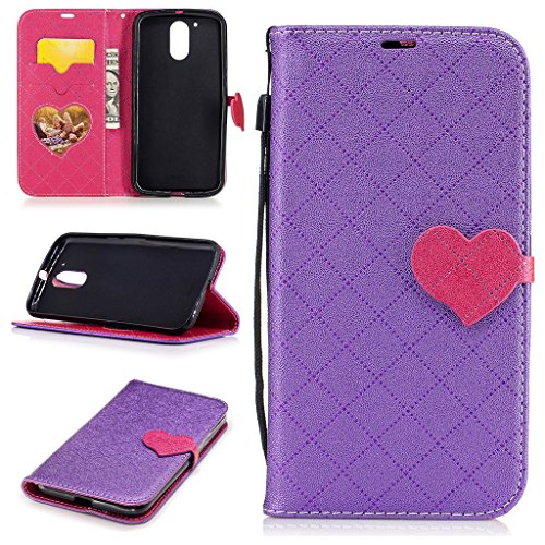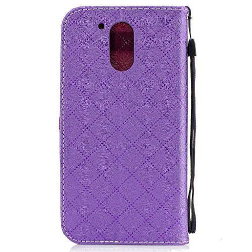 Aireratze(TM) MOTO G4/G4 PLUS ケース PU 手帳型 携帯電話用 [USBケーブルは無料です] カバー カード収納ポケット付き マグネット式 ストラップ付き スマートフォン保護ケース 両面プリントデザイン パープル