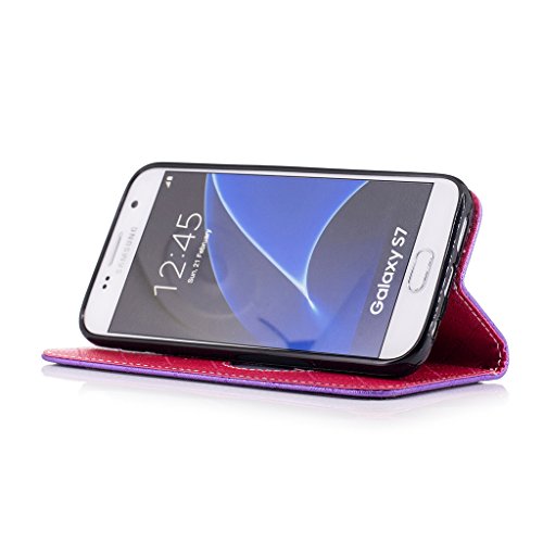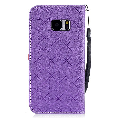 Aireratze(TM) Samsung Galaxy S7 ケース PU 手帳型 携帯電話用 [USBケーブルは無料です] カバー カード収納ポケット付き マグネット式 ストラップ付き スマートフォン保護ケース 両面プリントデザイン パープル