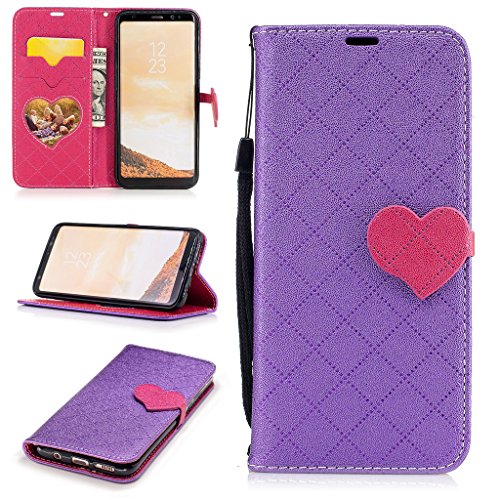 Aireratze(TM) Samsung Galaxy S8 Plus ケース PU 手帳型 携帯電話用 [USBケーブルは無料です] カバー カード収納ポケット付き マグネット式 ストラップ付き スマートフォン保護ケース 両面プリントデザイン パープル