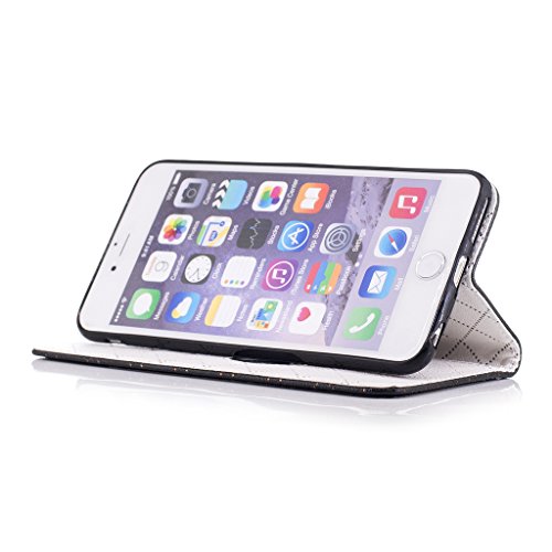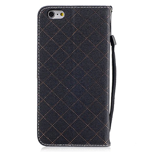 Aireratze(TM) iphone6S / iphone6 ケース PU 手帳型 携帯電話用 [USBケーブルは無料です] カバー カード収納ポケット付き マグネット式 ストラップ付き スマートフォン保護ケース 両面プリントデザイン 黒い