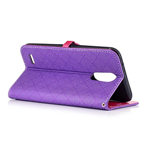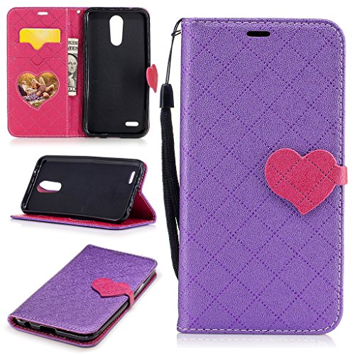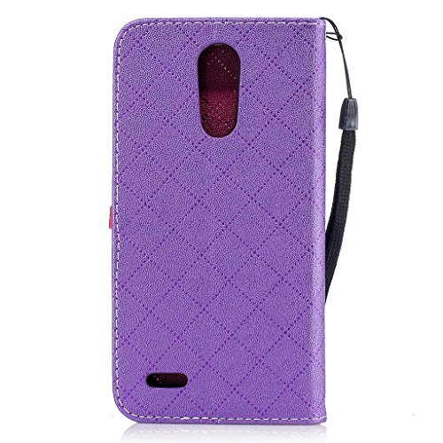 Aireratze(TM) LG K10 2017 ケース PU 手帳型 携帯電話用 [USBケーブルは無料です] カバー カード収納ポケット付き マグネット式 ストラップ付き スマートフォン保護ケース 両面プリントデザイン パープル