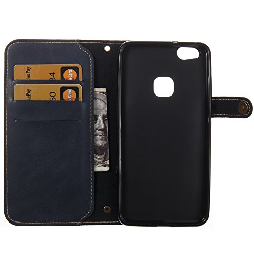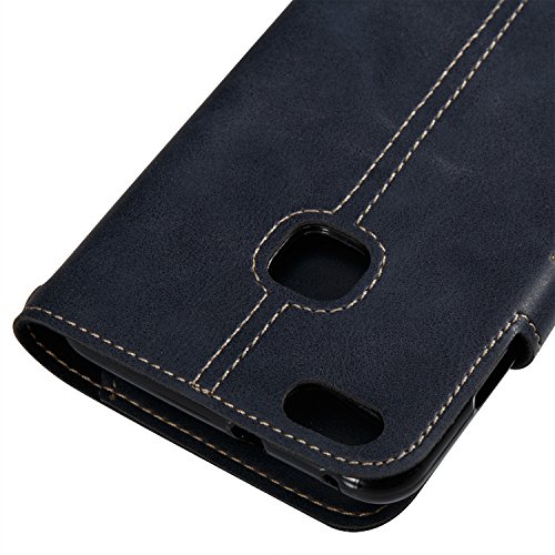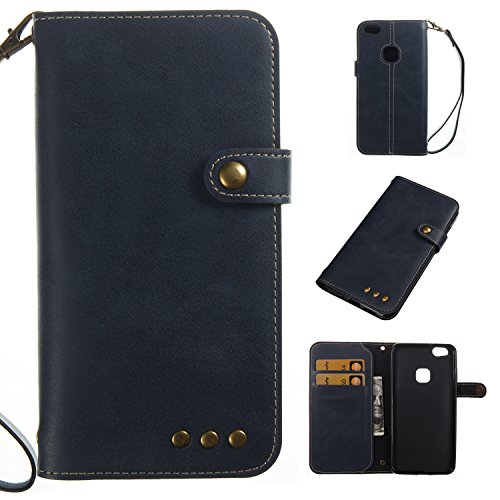 Aireratze(TM) Huawei P10 Lite ケース 良質PUレザーケース 横開き 手帳型 携帯電話用 [USBケーブルは無料です] カバー カード収納ポケット付き マグネット式 ストラップ付き スマートフォン保護ケース 両面プリントデザイン(ブルー)