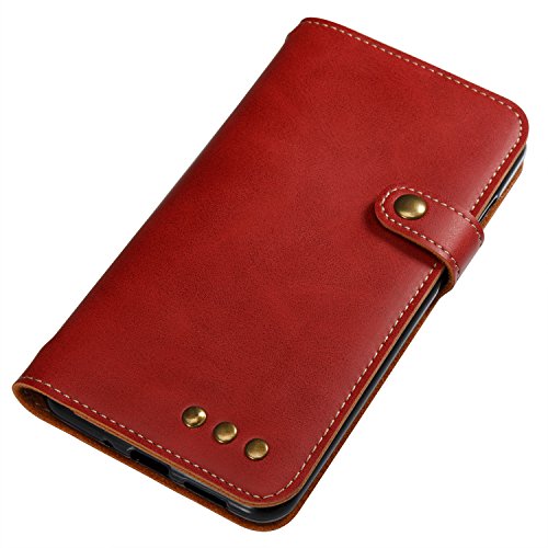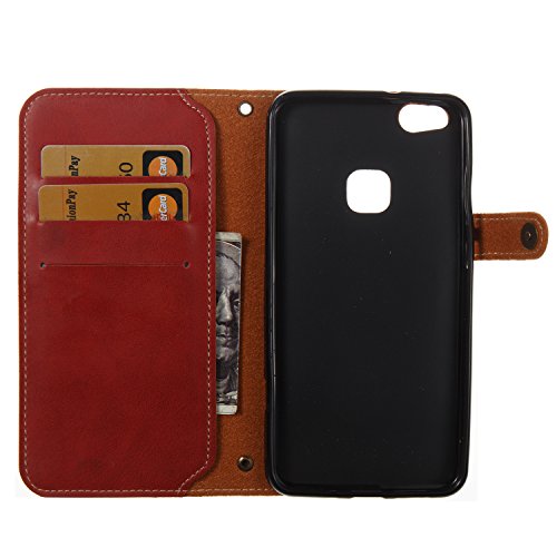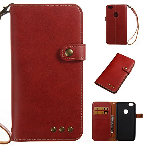 Aireratze(TM) Huawei P10 Lite ケース 良質PUレザーケース 横開き 手帳型 携帯電話用 [USBケーブルは無料です] カバー カード収納ポケット付き マグネット式 ストラップ付き スマートフォン保護ケース 両面プリントデザイン(レッド)