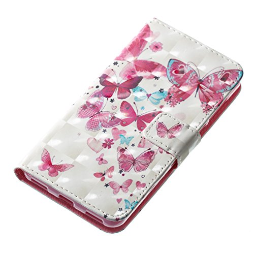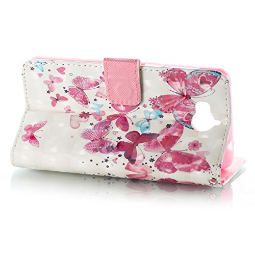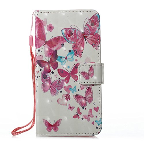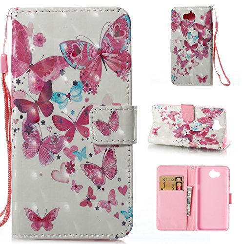 Aireratze(TM) Huawei Y6 2017 ケース カバー バンパー 手帳型 3D 合皮 PU レザー ストラップ付き アートデザイン 色鮮やか 図柄 お洒落 便利 な book case 型 柔らかいシリコンTPUラバーカバー スタンド機能 カード収納機能 ギャラクシー 手帳 スマホケース (バタフライ,1)