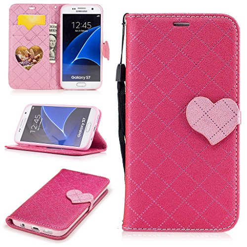 Aireratze(TM) Samsung Galaxy S7 ケース PU 手帳型 携帯電話用 [USBケーブルは無料です] カバー カード収納ポケット付き マグネット式 ストラップ付き スマートフォン保護ケース 両面プリントデザイン 赤い