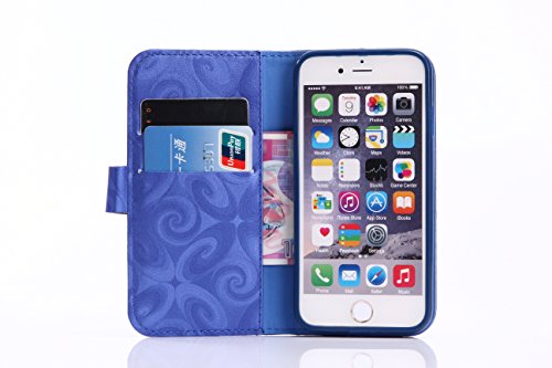 Aireratze(TM) iPhone7 ケース PU 手帳型 携帯電話用 [USBケーブルは無料です] カバー カード収納ポケット付き マグネット式 ストラップ付き スマートフォン保護ケース 両面プリントデザイン ブルー