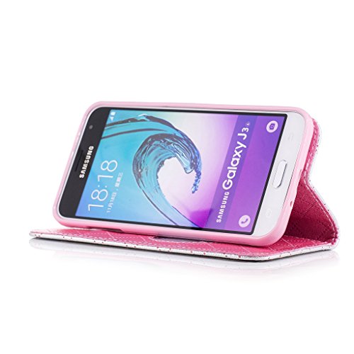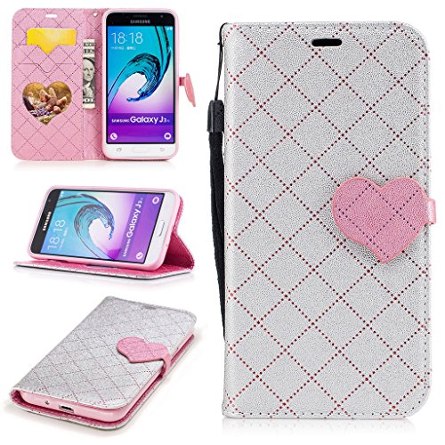 Aireratze(TM) Samsung Galaxy J3 2016 (J310) ケース PU 手帳型 携帯電話用 [USBケーブルは無料です] カバー カード収納ポケット付き マグネット式 ストラップ付き スマートフォン保護ケース 両面プリントデザイン 灰色