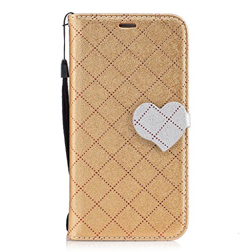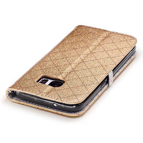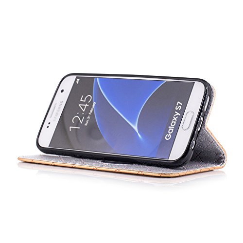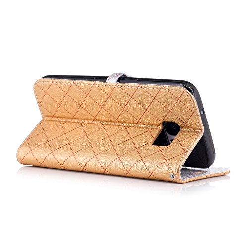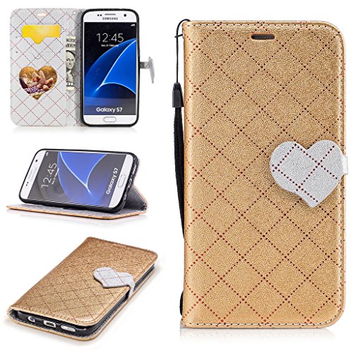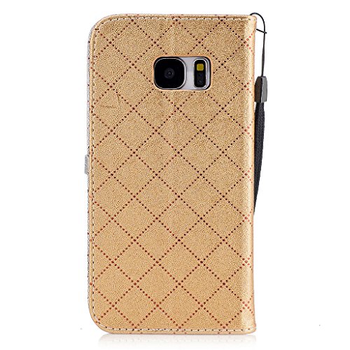 Aireratze(TM) Samsung Galaxy S7 ケース PU 手帳型 携帯電話用 [USBケーブルは無料です] カバー カード収納ポケット付き マグネット式 ストラップ付き スマートフォン保護ケース 両面プリントデザイン ゴールド