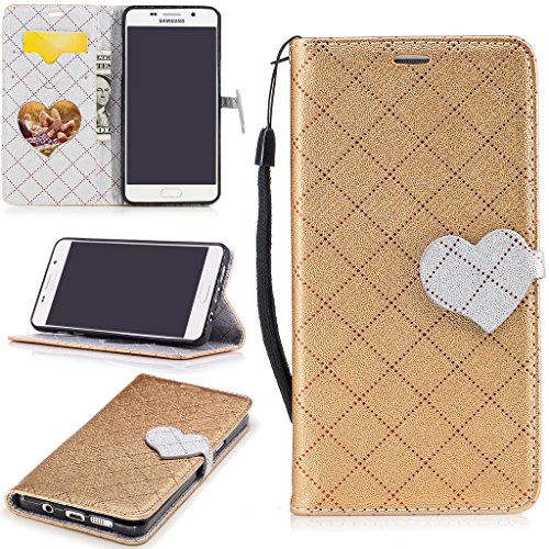 Aireratze(TM) Samsung Galaxy A3 2016 (A310) ケース PU 手帳型 携帯電話用 [USBケーブルは無料です] カバー カード収納ポケット付き マグネット式 ストラップ付き スマートフォン保護ケース 両面プリントデザイン ゴールド