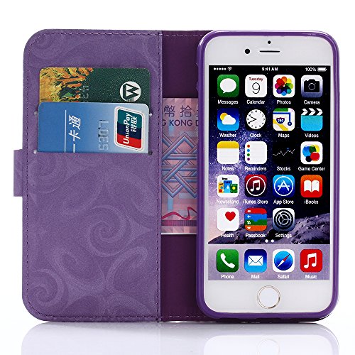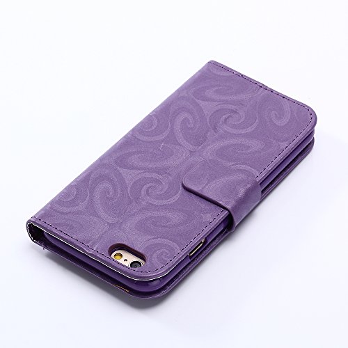 Aireratze(TM) iPhone7 ケース PU 手帳型 携帯電話用 [USBケーブルは無料です] カバー カード収納ポケット付き マグネット式 ストラップ付き スマートフォン保護ケース 両面プリントデザイン パープル