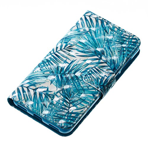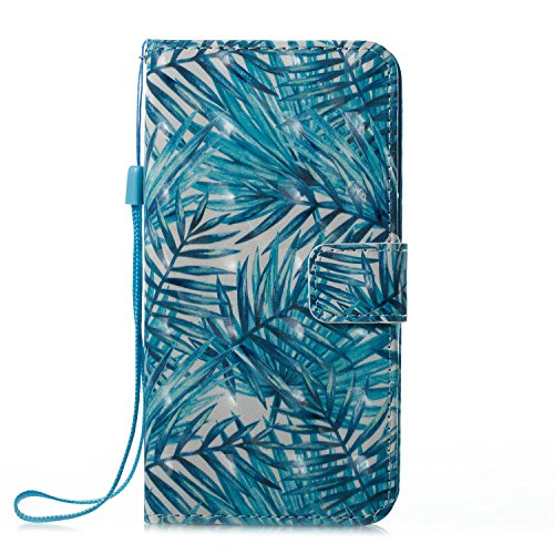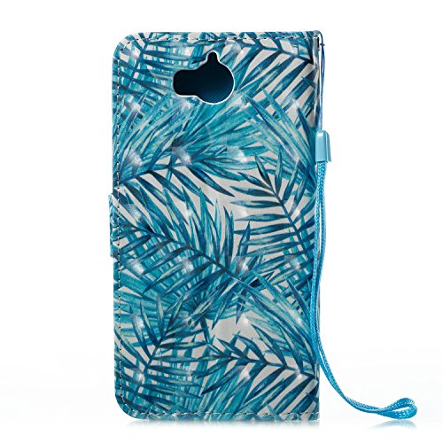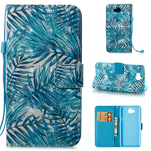 Aireratze(TM) Huawei Y5 2017 ケース カバー バンパー 手帳型 3D 合皮 PU レザー ストラップ付き アートデザイン 色鮮やか 図柄 お洒落 便利 な book case 型 柔らかいシリコンTPUラバーカバー スタンド機能 カード収納機能 ギャラクシー 手帳 スマホケース (葉)