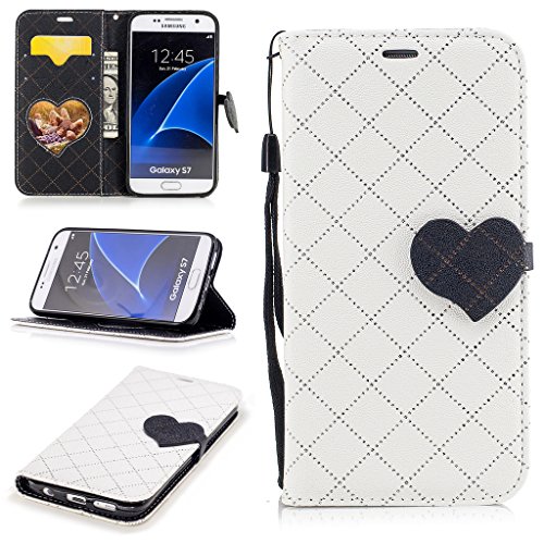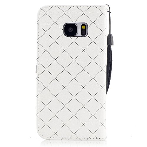 Aireratze(TM) Samsung Galaxy S7 ケース PU 手帳型 携帯電話用 [USBケーブルは無料です] カバー カード収納ポケット付き マグネット式 ストラップ付き スマートフォン保護ケース 両面プリントデザイン 白い