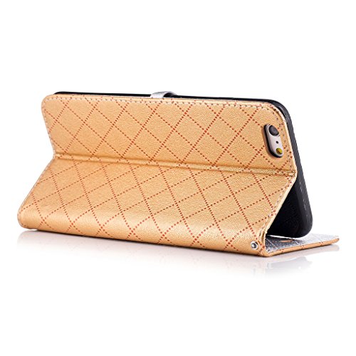 Aireratze(TM) iphone7 ケース PU 手帳型 携帯電話用 [USBケーブルは無料です] カバー カード収納ポケット付き マグネット式 ストラップ付き スマートフォン保護ケース 両面プリントデザイン ゴールド