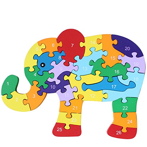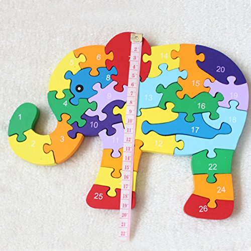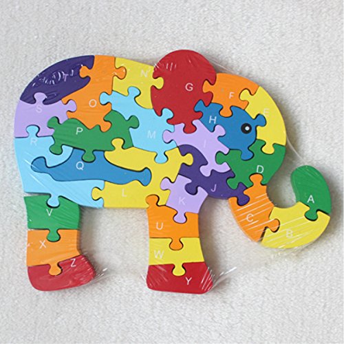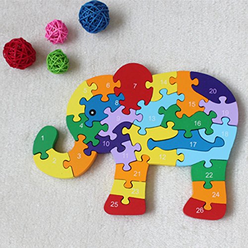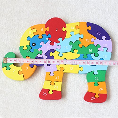 Aisa子供カラフルな漫画ジグソーパズルアルファベット番号学習教育玩具木製ブロック象動物