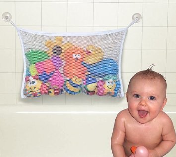 KEEPS YOUR BATHROOM NEAT AND TIDY! With this amazing, large Bath Toy Organizer and storage you can keep all your kid's toys in one place in a net attached to the wall, safe and out of the way.;EXCELLENT SUCTION AND STABILITY! The suction cups have been specifically designed to hold up toys or bathroom accessories without any trouble. You will receive an extra pair of large super-strong suction cups as well;MULTITUDE OF USES! You can use this Bathroom Toy Organizer in other places aside from the bathroom walls, corner. Can become an excellent clutter holder on baby strollers, kitchen tiles, caddy etc.;NO MORE MOLDY TOYS! Keeping your kid's toys or your bathroom accessories off the wet floor and surfaces will prevent any mold or mildew from growing on them, making it safer and healthier.;100% SATISFACTION GUARANTEE! We care deeply about our customer's satisfaction and that is why we offer a full refund if you find this product lacking. No strings attached and no risk involved for you!
