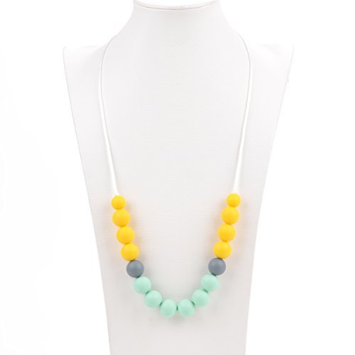 Aishine Teether -Natural Pain Reduce Rainbow Silicone Teething Pendant Nursing Breastfeeding Necklace for Mom & Baby-Educational Organic Food Grade Jewelry ( Bead Yellow) by Aishine