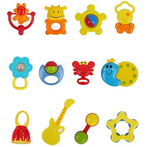 - Aivtalk 12 Piece Animal Fun Baby Rattle and Teether Toy Gift Set withGiant Baby Bottle Bank