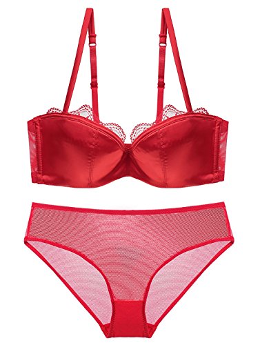 Aivtalk シンプル ブラジャー ショーツ セット セクシー d80 赤 盛りブラ 光沢感