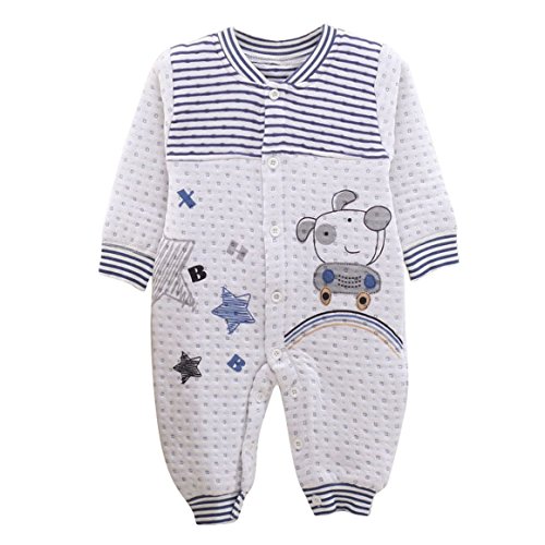 ボディースーツ カバーオール ベビー服 子供用 綿 かわいい 肌触りいい 快適 柔らか 出産祝い ワンちゃん ブルー 59cm