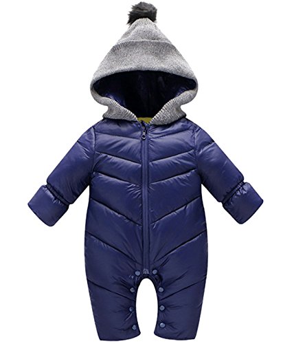 新生児服 カバーオール 男の子 ベビー服 ジャンプスーツ 秋冬 着ぐるみ 中綿 防寒 出産祝い ブルー 80