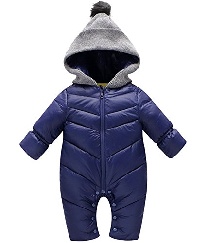 ベビー服 男の子 前開き ジャンプスーツ カバーオール 着ぐるみ 新生児 中綿 厚手 防寒 出産祝い ブルー 90