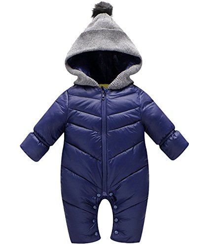 ベビー ジャンプスーツ 男の子 カバーオール 秋冬 着ぐるみ 外出服 中綿 厚手 防寒 出産祝い ブルー 100