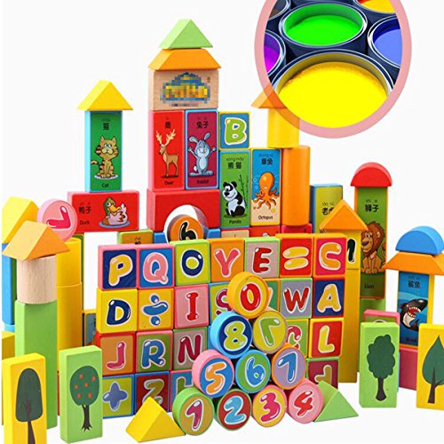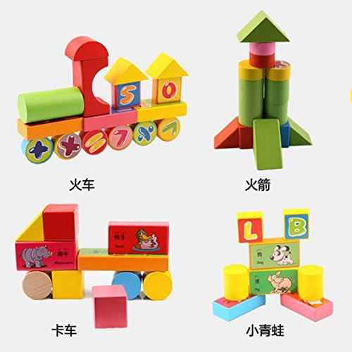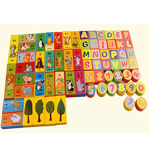 Ajusen 木のおもちゃ 知育玩具 英数字 動物 積み木 カラー認識 子供 3歳以上