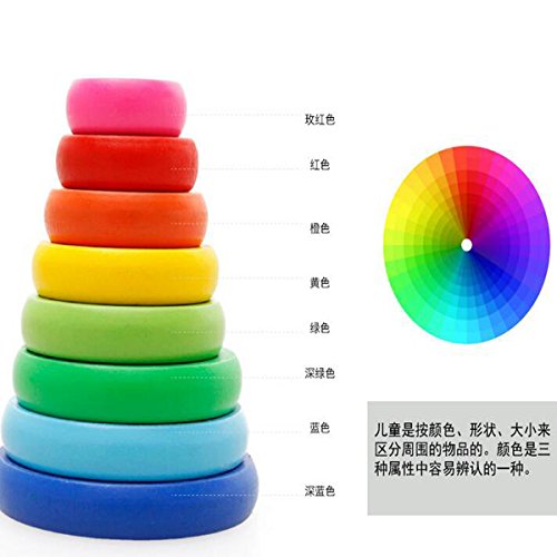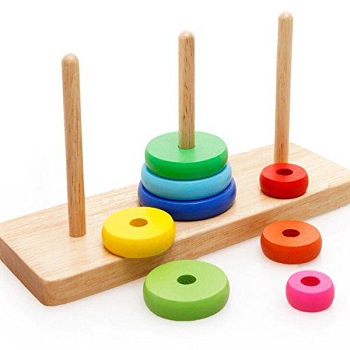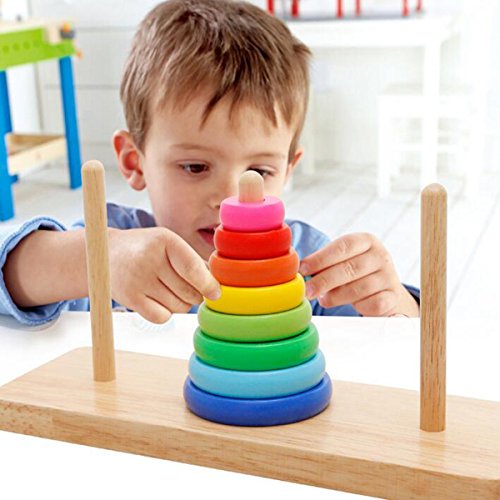 Ajusen 木のおもちゃ 積み木 ハノイの塔 レインボー スタッカー カラー 認識 子供 知育玩具
