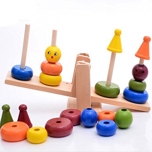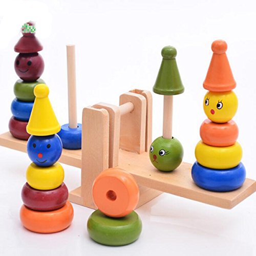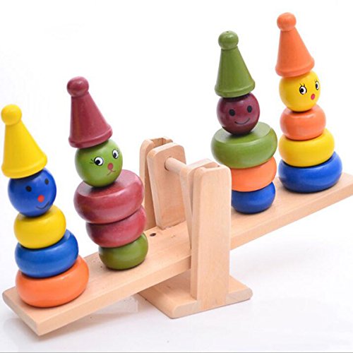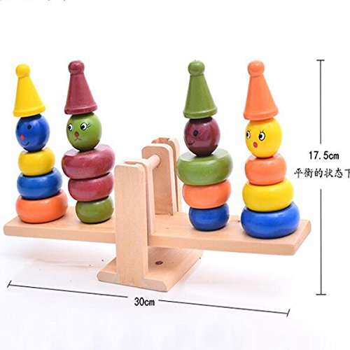 Ajusen 木のおもちゃ ピエロ バランス木 積み木 カラー認識 バランス訓練 子供 知育玩具
