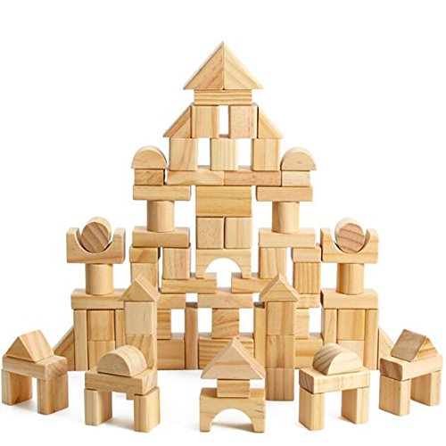 Ajusen 木のおもちゃ 知育玩具 積み木 幾何形状 カラー認識 子供 3歳以上 100枚