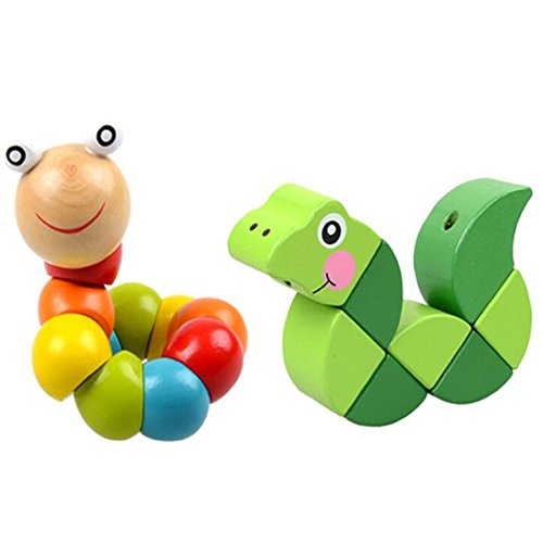 Ajusen 木のおもちゃ 虫 蛇 積み木 カラー認識 子供 知育玩具 2セット