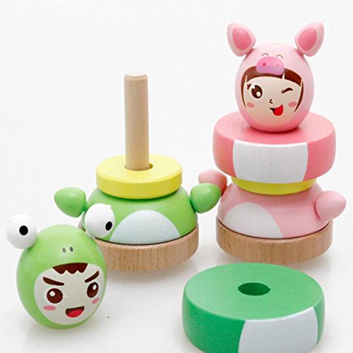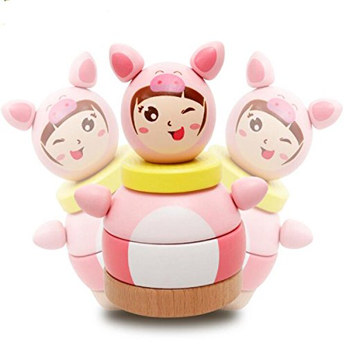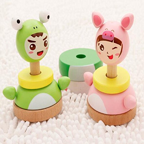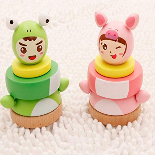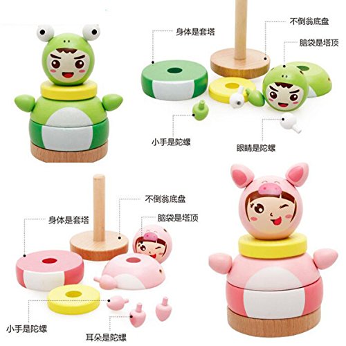 Ajusen 木のおもちゃ 積み木 タンブラ 子供 知育玩具 可愛い (二セット)