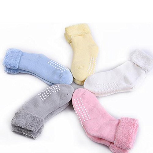 Ajusen ソックス 厚手 赤ちゃん キッズ 子供 靴下 コットン 綿 暖かい 滑り止め 秋冬 5足セット (XS:0-3個月)